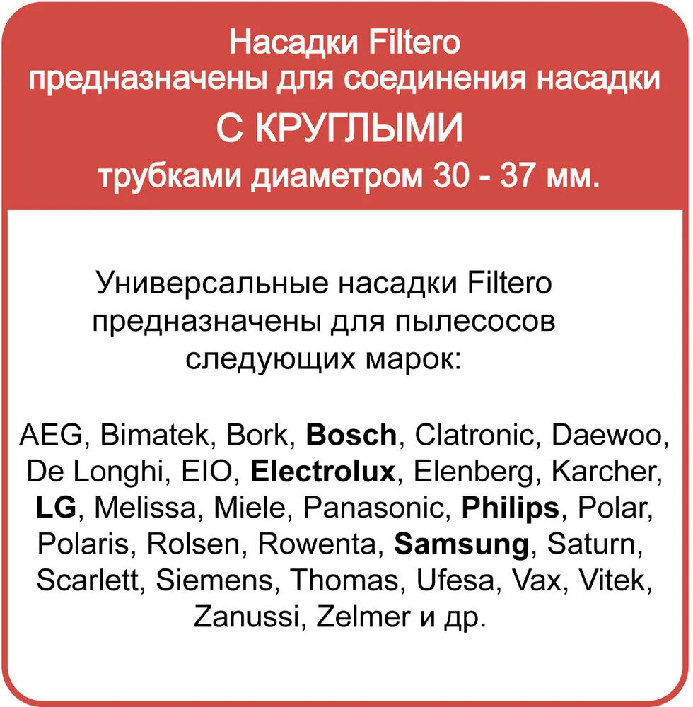 Насадка Filtero FTN 03 для сухой уборки жестких полов, с универсальным соединителем 30-37 мм информация: