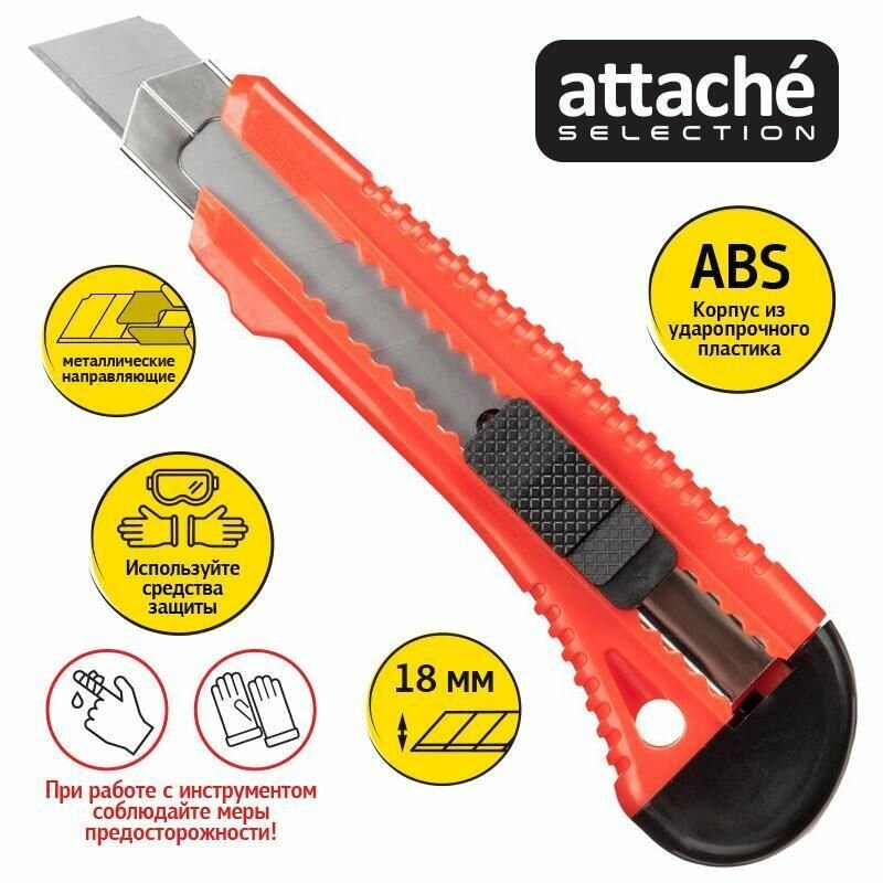 | Дополнительная информация | Канцелярский нож Attache Selection строительный, ширина лезвия 18 мм, с фиксатором |