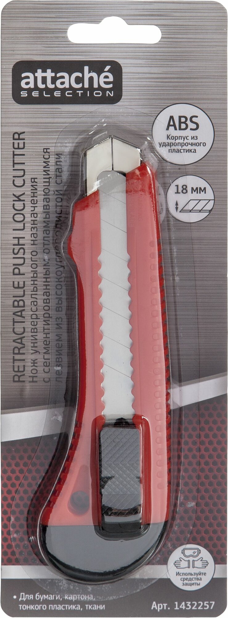 Нож канцелярский Attache Selection универсальный 18 мм, Push lock информация: