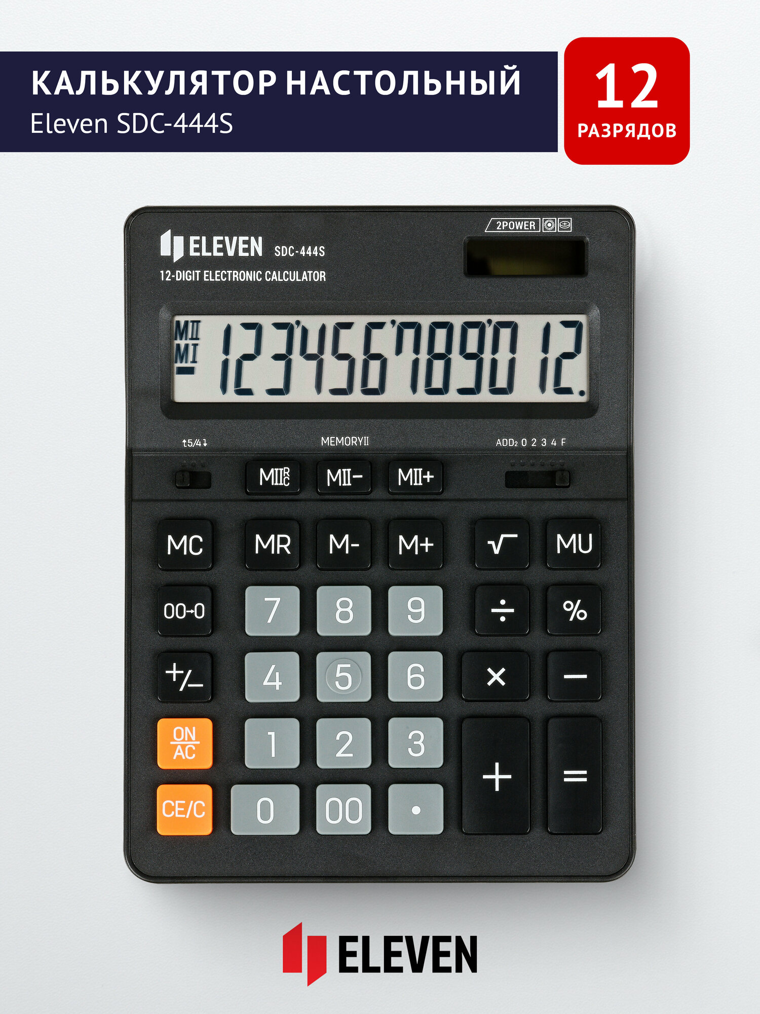 Калькулятор настольный для ЕГЭ непрограммируемый большой для школы Eleven SDC-444S для физики, бухгалтерский / 12 разрядов / черный информация: