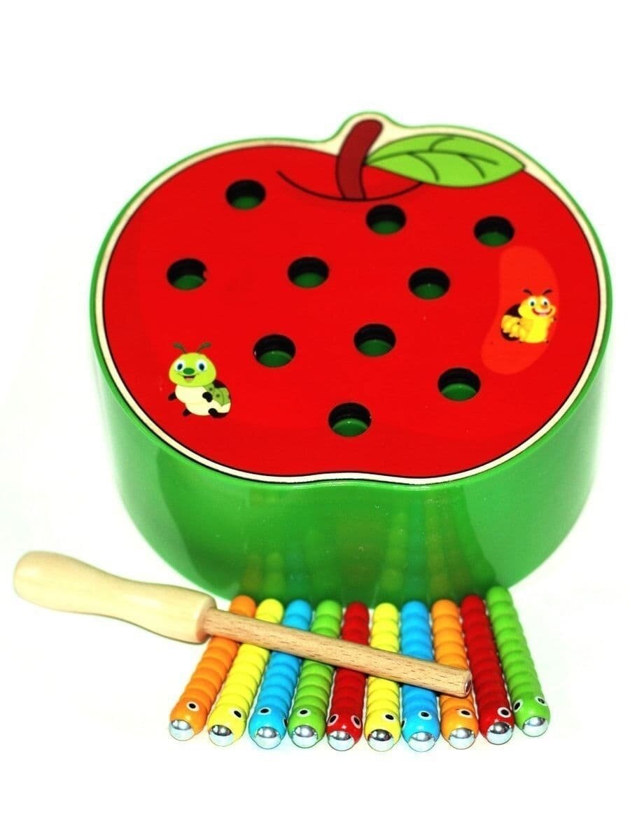 Развивающая игра Страна Монтессори магнитная рыбалка сортер (Поймай червячка в яблоке)