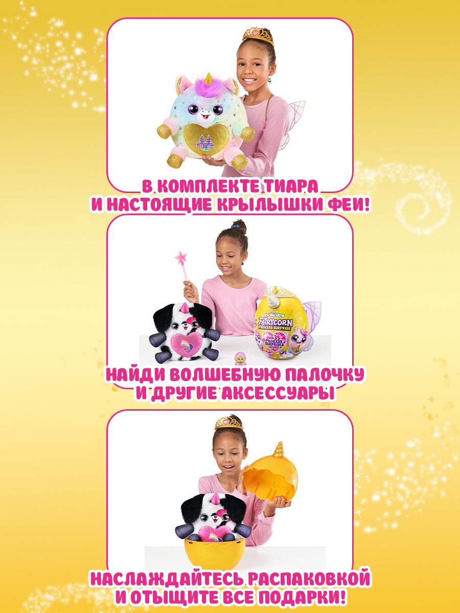 Большая мягкая игрушка фея 30 см ZURU Rainbocorns Fairycorn, яйцо-сюрприз с наклейками, диадема и аксессуары для волос, подарок для девочки, 3+, 9281