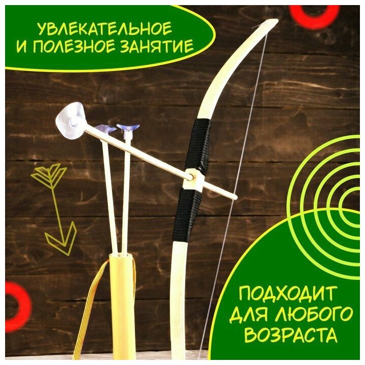 10 цен на Лук средний, бамбуковый, 3 стрелы, длина: 60 см., колчан в наборе, для детей и малышей