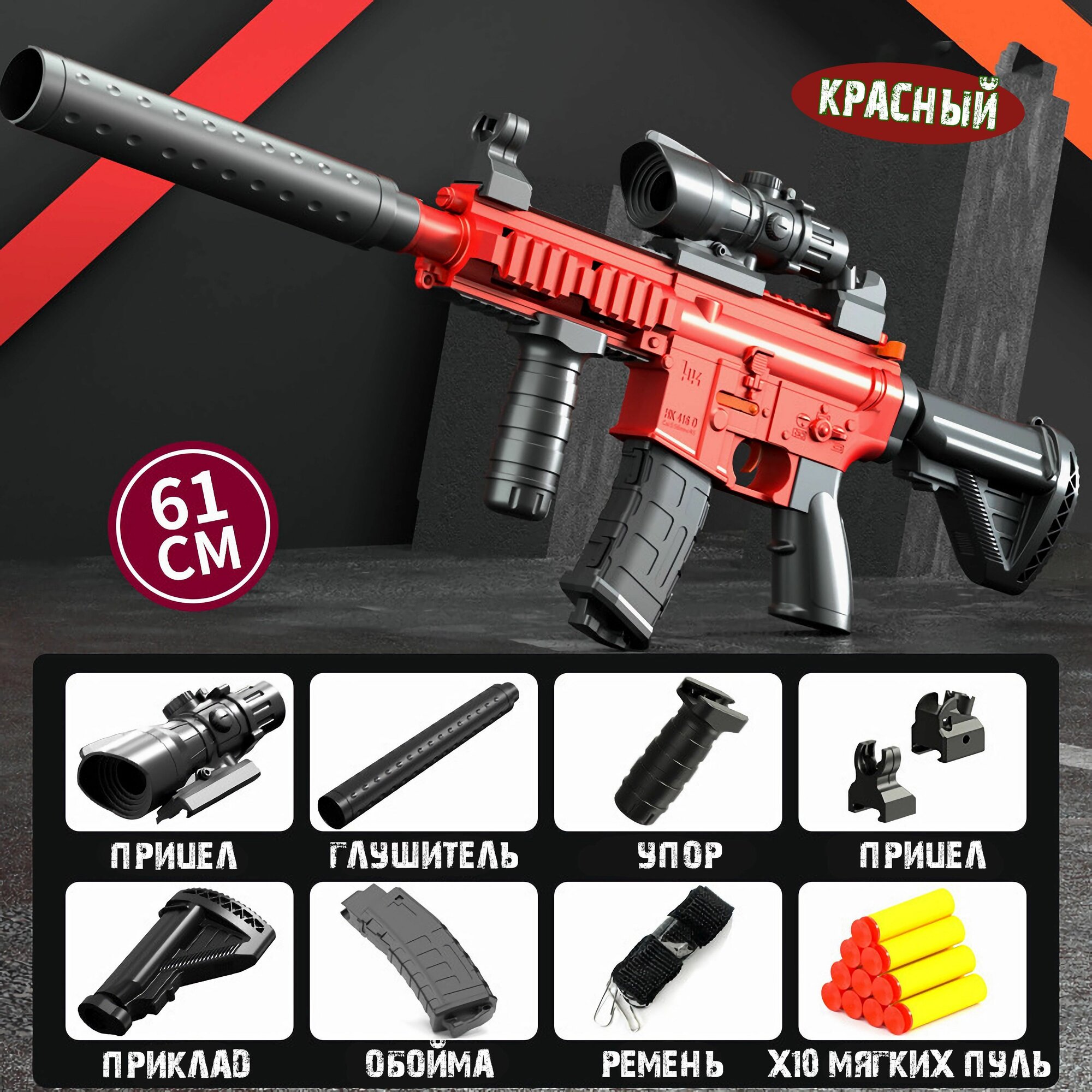 10 цен на Нерф игрушечный автомат с мягкими пулями М416.Детское оружие с глушителем и ручной загрузкой. Отличный подарок мальчику! Цвет Красный.