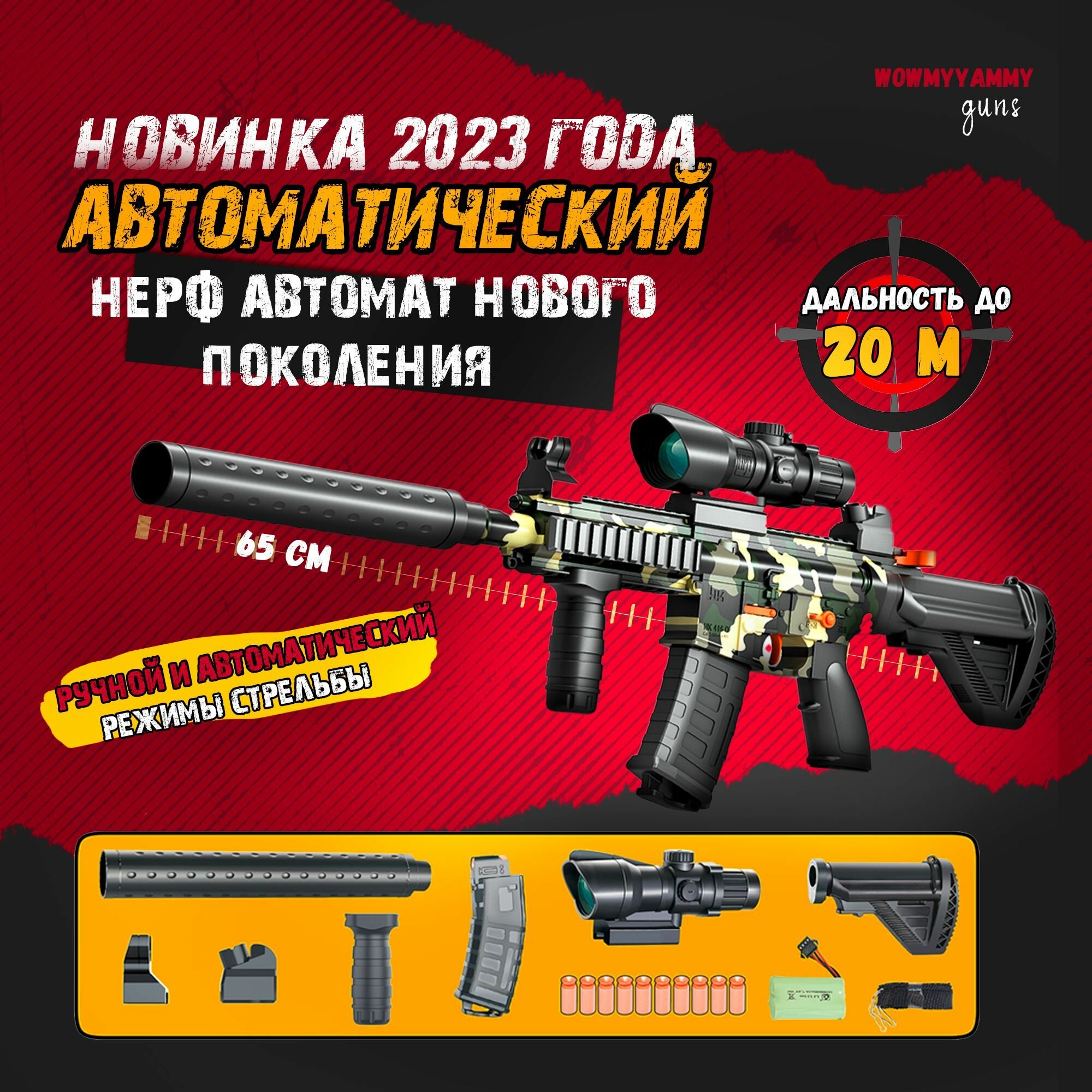 Нерф автомат игрушечный. Зарядка от аккумулятора и вручную. Мощный реалистичный выстрел с отдачей и звуком. Не шумит до выстрела. информация:
