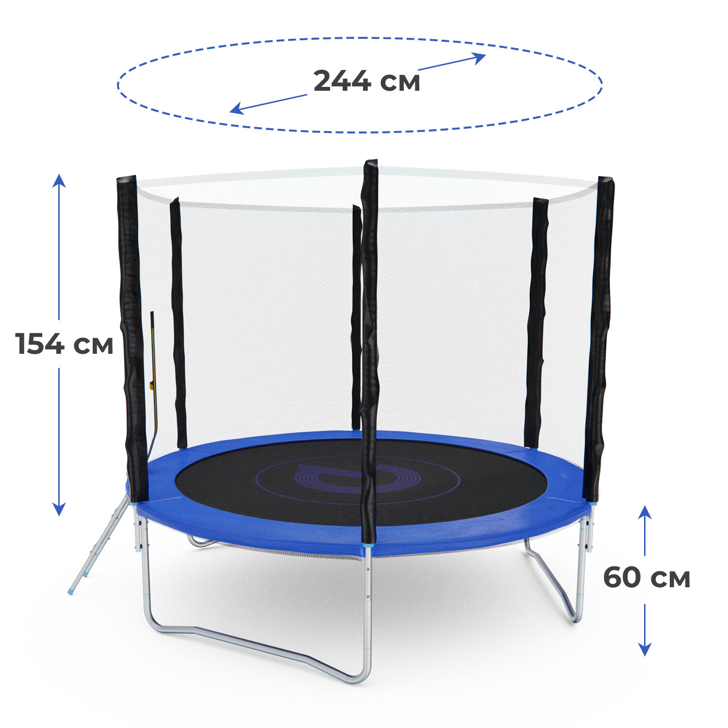 Детский каркасный батут DFC Pelpo 8 футов с лестницей и защитной сеткой, синий, 244 см, нагрузка 100 кг информация: