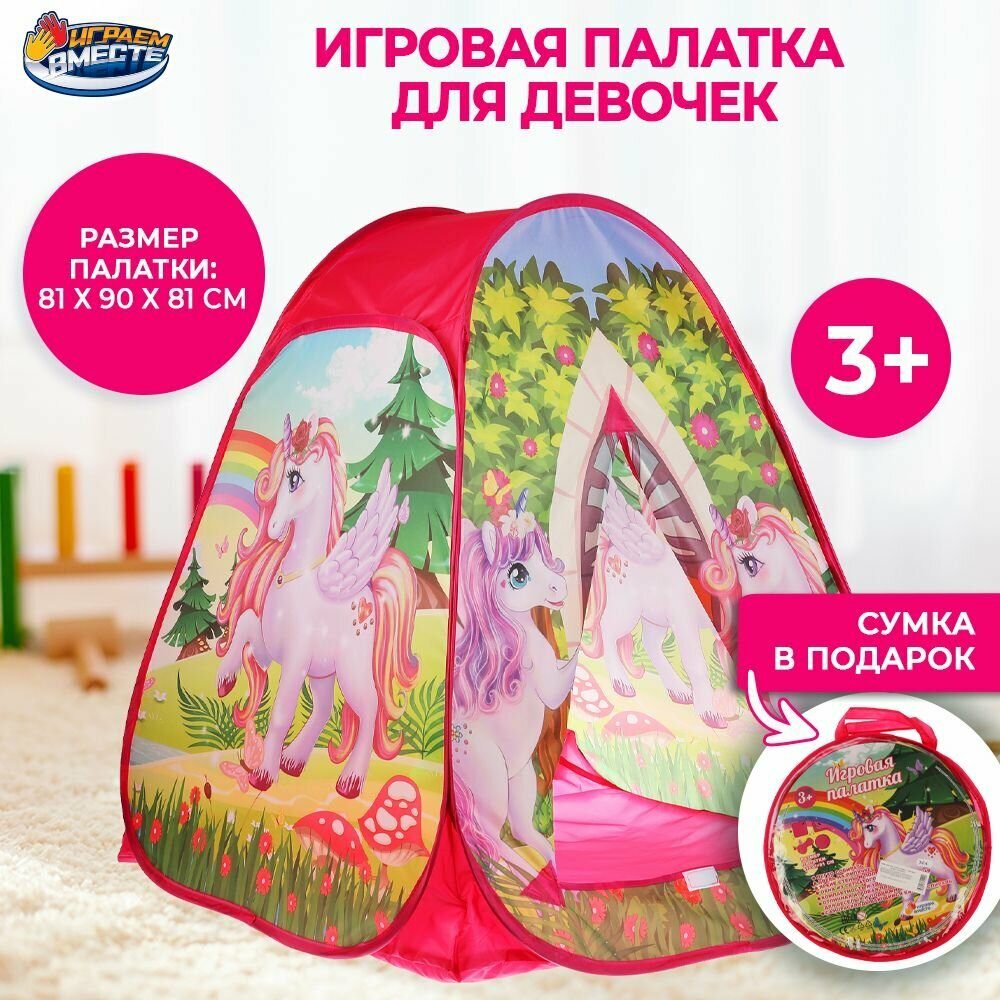 Играем вместе. Палатка "Единороги" детская игровая в сумке 81х90х81 см