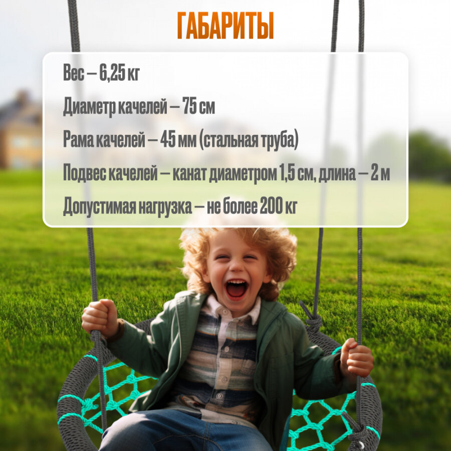 Качели-гнездо детские Rokids подвесные, 75 см, черно-зеленый информация: