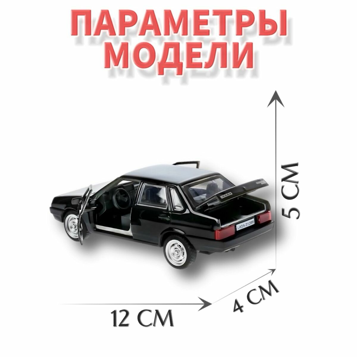 Машинка детская Лада ВАЗ 21099 Спутник 12 см, Технопарк, черная, открываются двери и багажник, металлическая