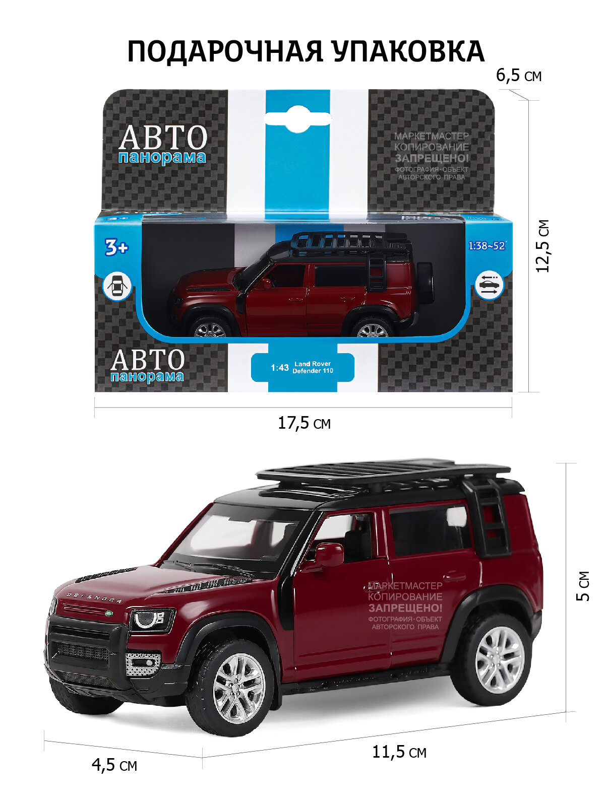 Отзывы на Машинка металлическая инерционная ТМ Автопанорама, Land Rover Defender 110, М1:43, красный, JB1251476