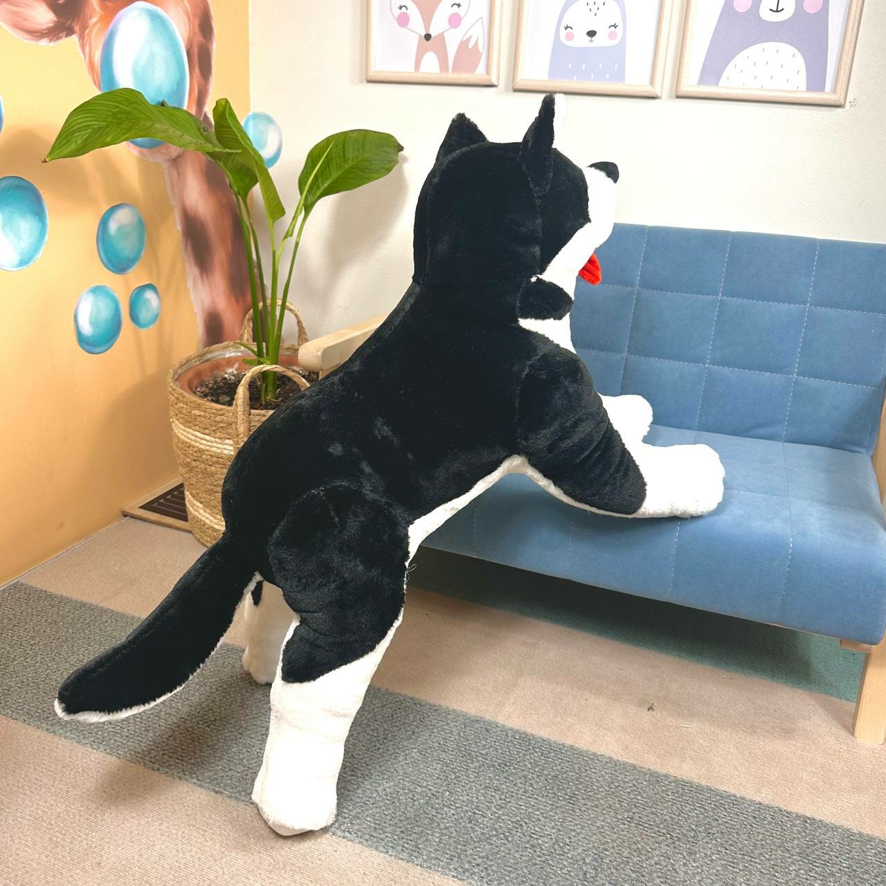 Мягкая игрушка Собака черная Хаски с языком 70 см информация: