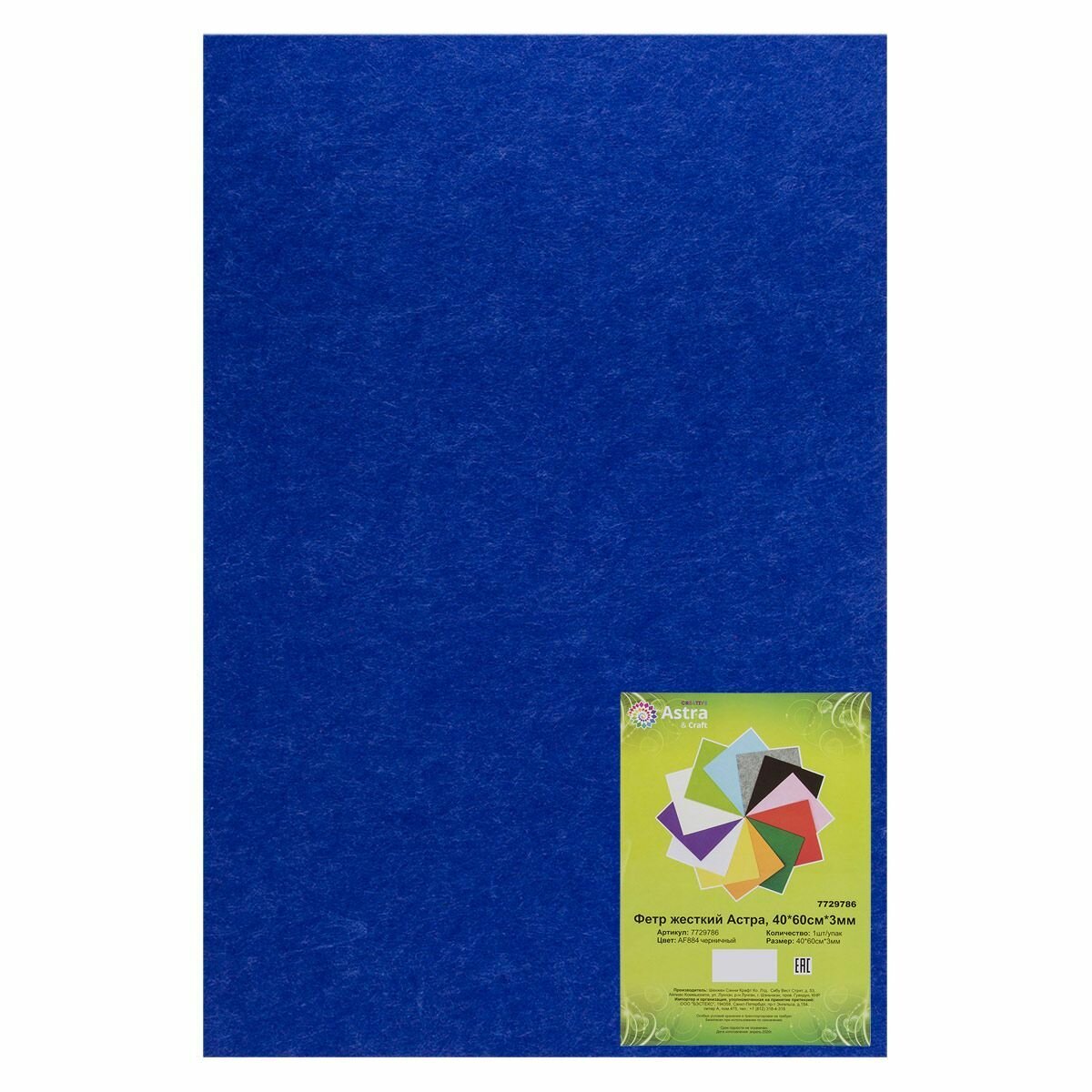 Фетр жесткий листовой Astra&Craft, 3 мм, 40х60 см (AF884 синий) информация:
