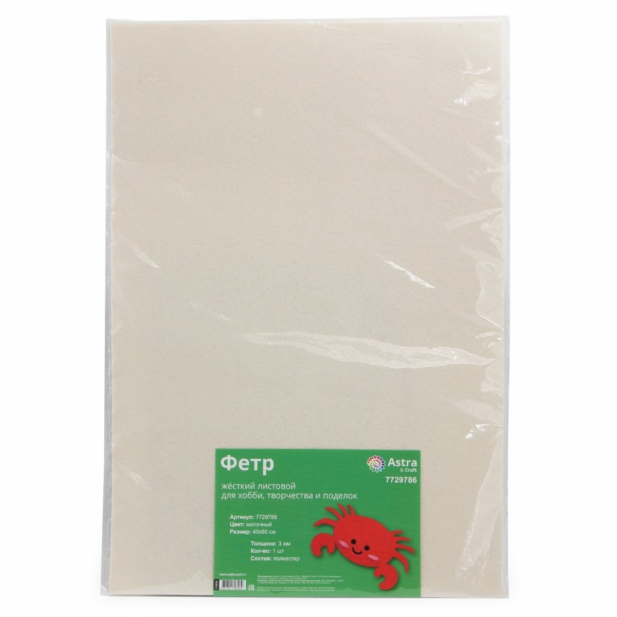 Фетр жесткий листовой Astra&Craft, 3 мм, 40х60 см (AF826 молочный) информация: