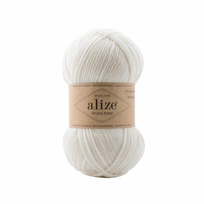 Пряжа Alize Wooltime Ализе ВулТайм, 01 молочный, 75% шерсть, 25% полиамид, 100 г, 200 м, 1 моток.