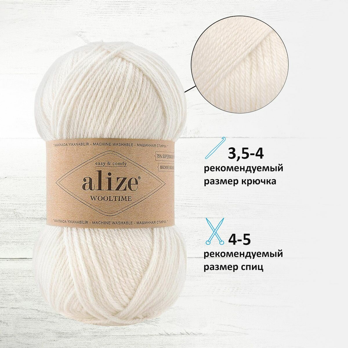 Пряжа Wooltime Alize. Ализе Вултайм 2 мотка по 100 гр. Цвет: 01 кремовый. Состав: 75% супервош-шерсть 25% полиамид. Метраж: 100 гр. 200 м.