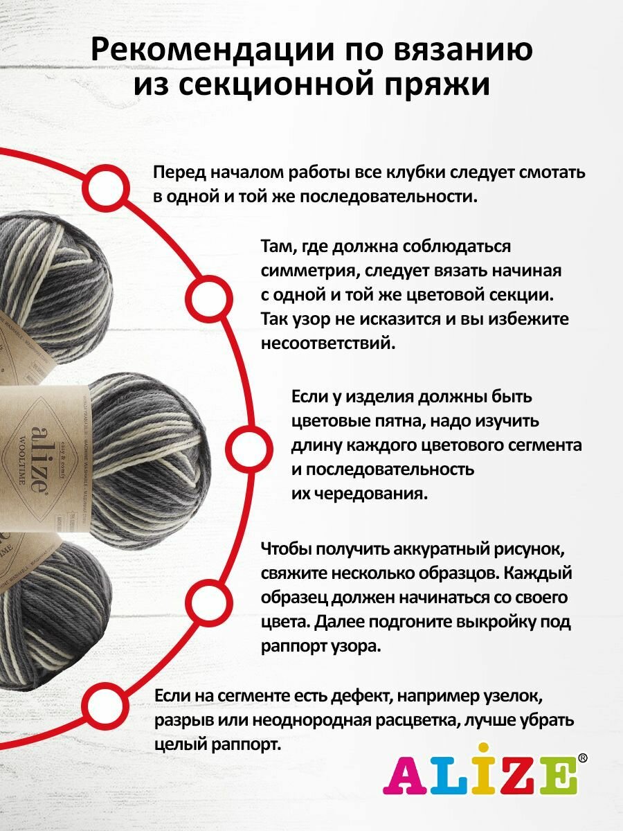 Пряжа для вязания ALIZE 'Wooltime', 100г, 200м (75% SW шерсть, 25% полиамид) (11016 секционный), 5 мотков информация: