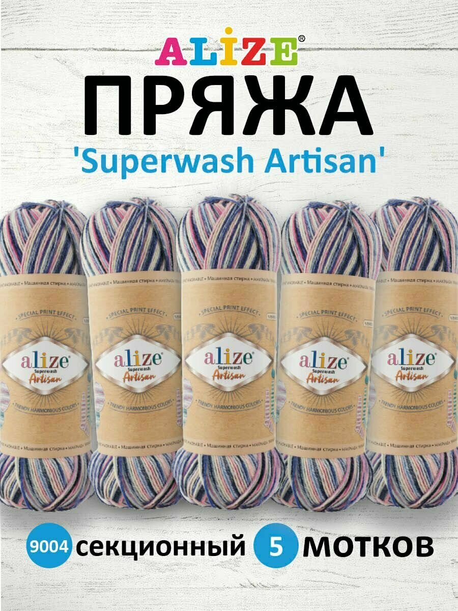 10 цен на Пряжа для вязания ALIZE 'Superwash Artisan', 100г, 420м (75% SW шерсть, 25% полиамид) (9004 секционный), 5 мотков
