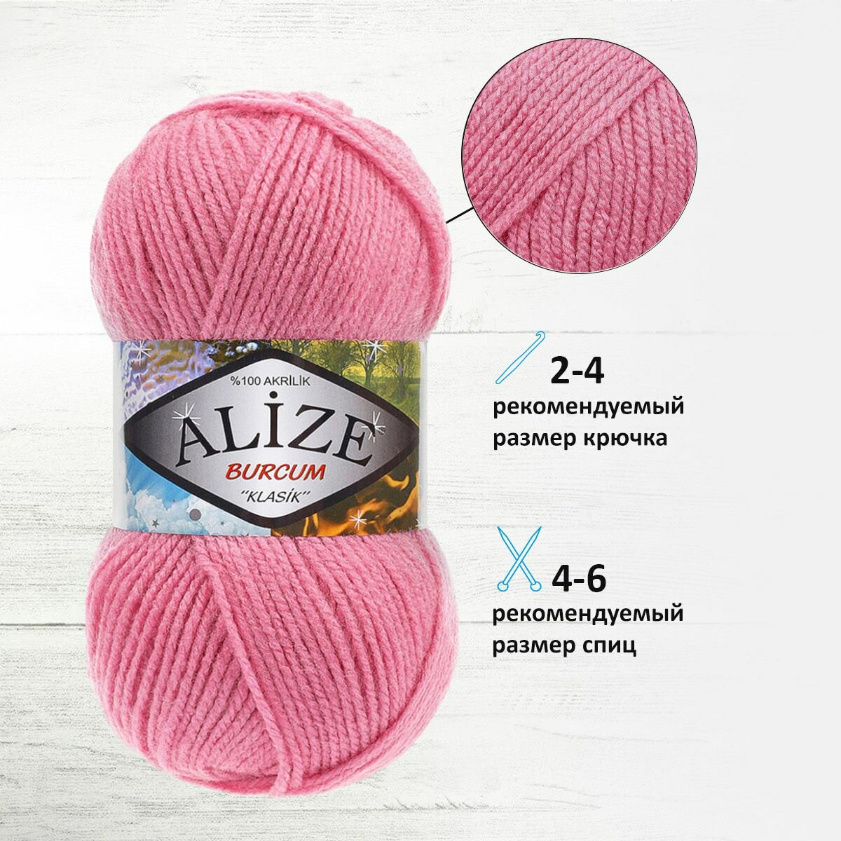 Отзывы на Пряжа для вязания ALIZE 'Burcum Klasik', 100г, 210м (100% Aкрил) (178 тёмно-розовый), 5 мотков