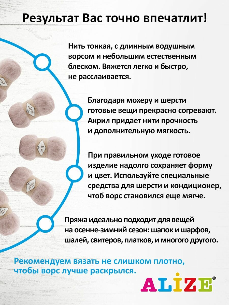 Отзывы на Пряжа для вязания ALIZE '3 SEASON', 100г, 500м (25% мохер, 24% шерсть, 51% акрил) (67 молочно-бежевый), 5 мотков