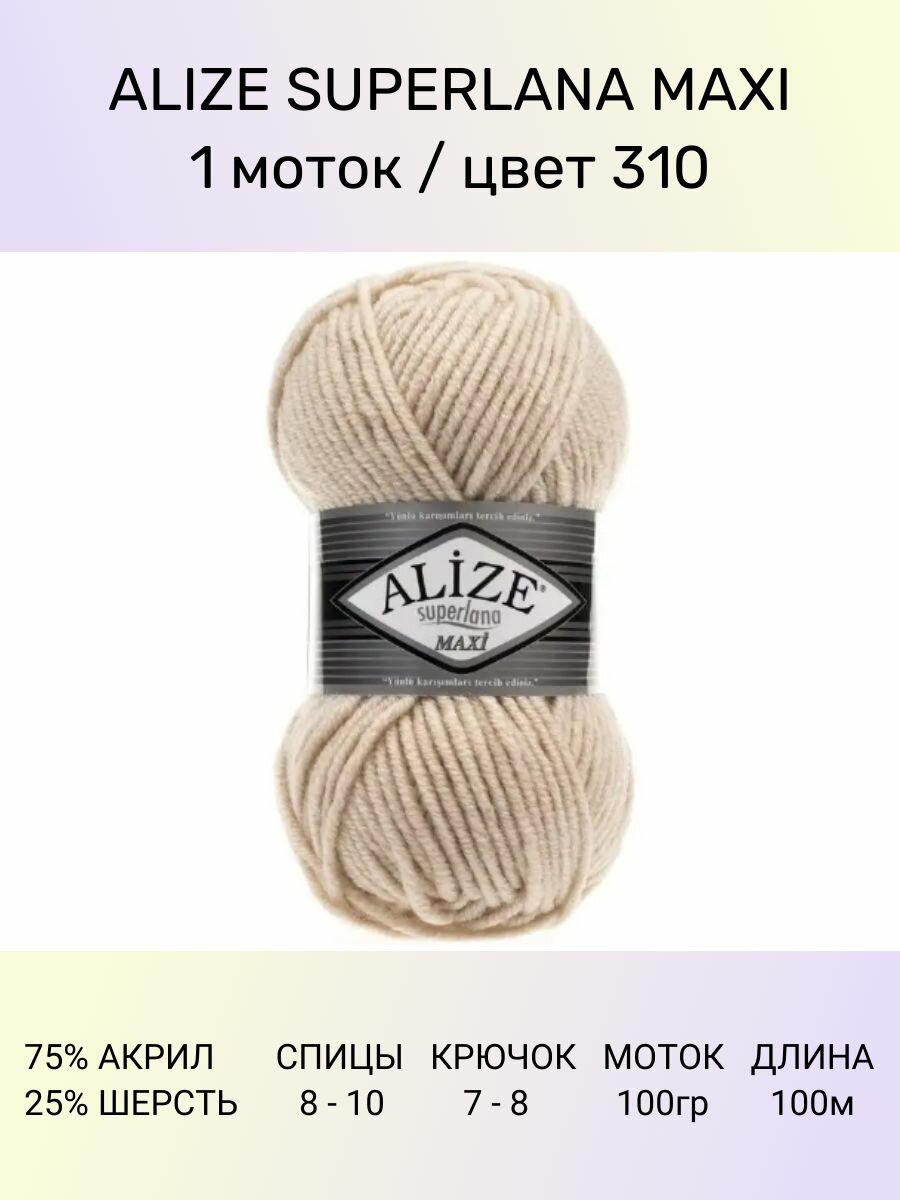 Отзывы на Пряжа Alize Superlana Maxi медовый (310), 25%шерсть/75%акрил, 100м, 100г, 1шт