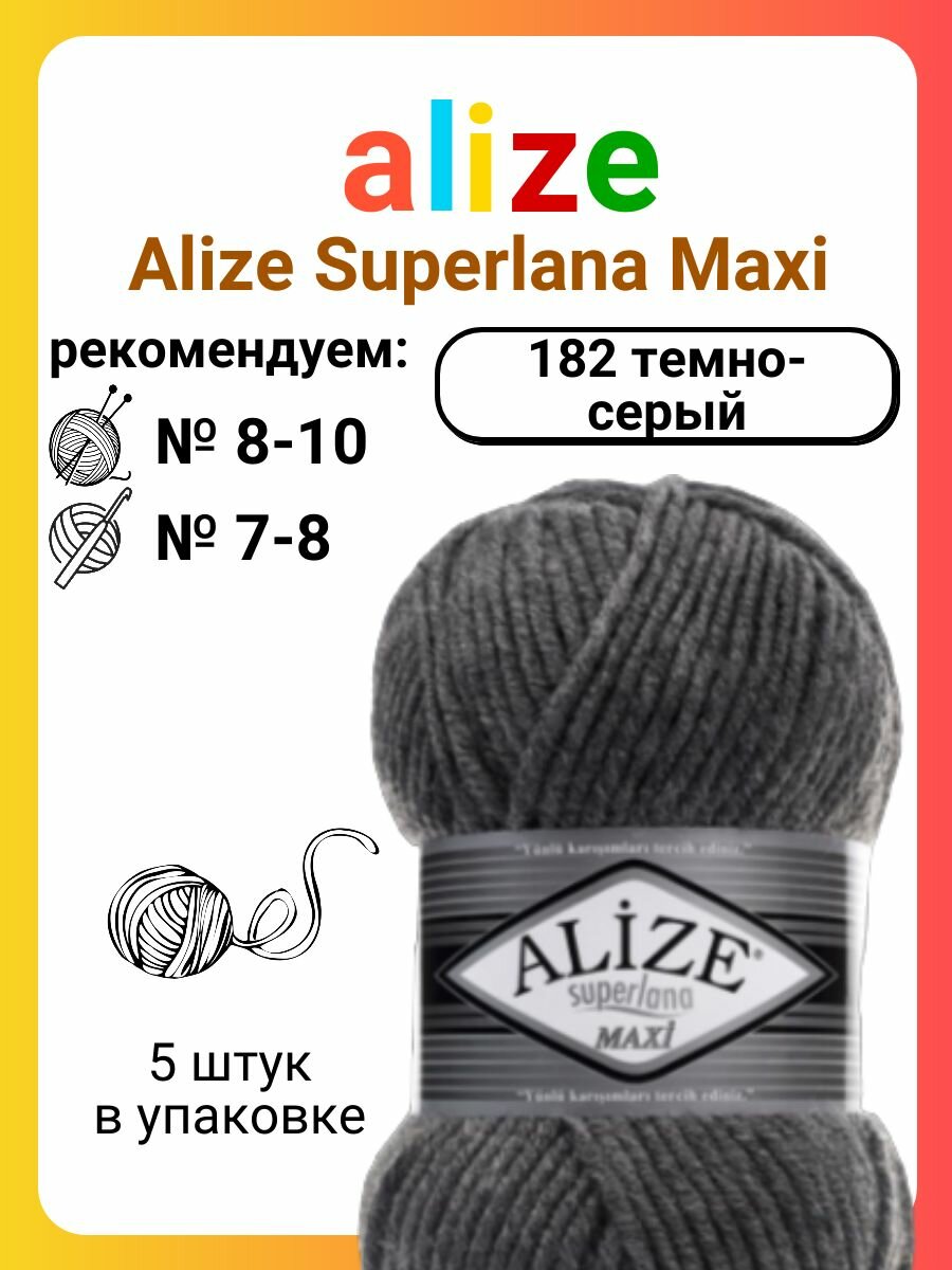 Пряжа Alize Superlana Maxi 182 темно-серый, 100 г, 100 м, 5 штук информация: