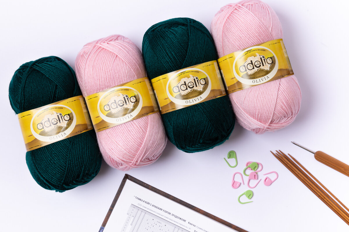 Пряжа Adelia "OLIVIA", 5 шт. по 100 г, набор, 60% акрил, 40% шерсть 250 м №04 розовый