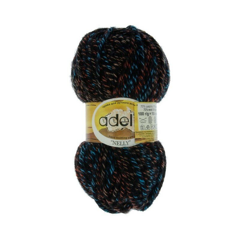 Пряжа ADELIA "NELLY" 70% шерсть, 30% акрил 100 г 100 м №19 черный-голубой-оранжевый информация: