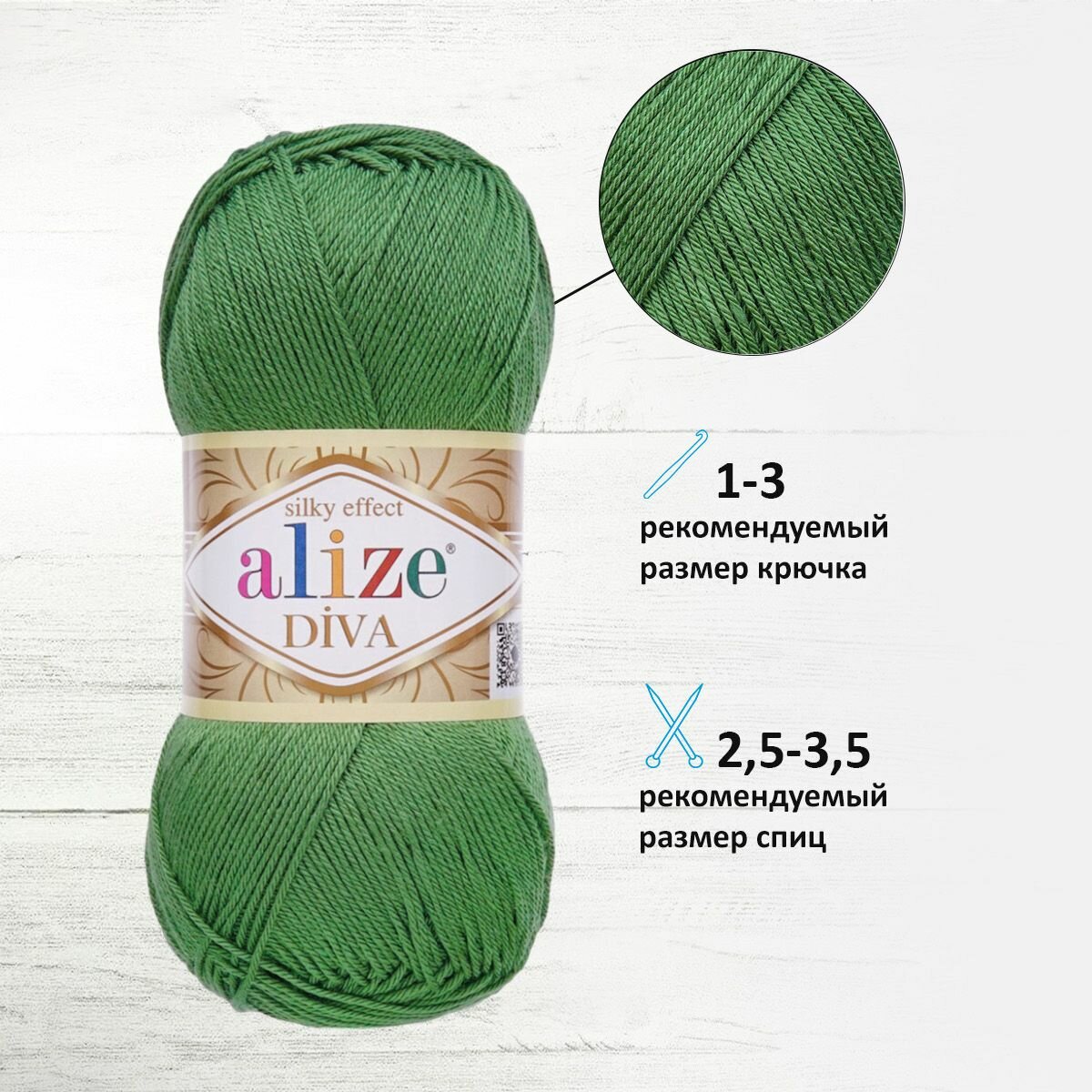 10 цен на Пряжа Alize Diva зеленый базилик (79), 100%микрофибра, 350м, 100г, 5шт