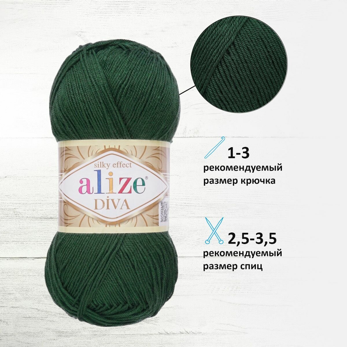 Пряжа ALIZE DIVA, базилик(зеленый - 79, 100% микрофибра акрил, 5 мотков, 100 г, 350 м.