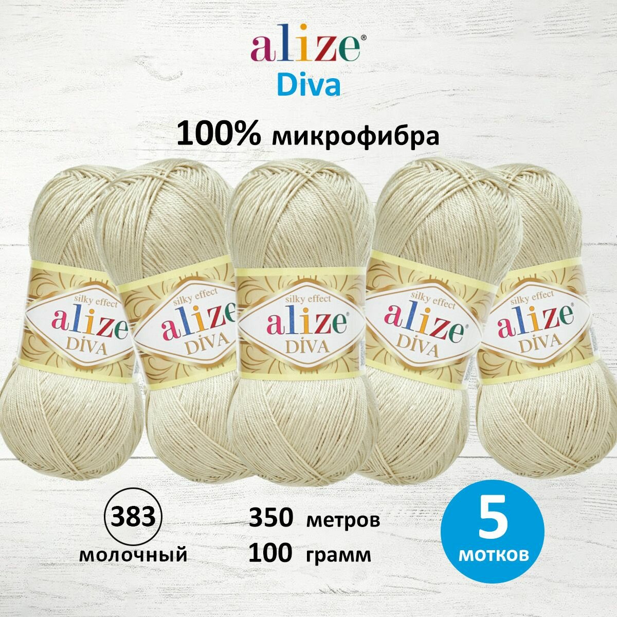 Пряжа ALIZE "Diva", 100 гр 350 м, 100% микрофибра, ТУ 62 молочный, 5 шт