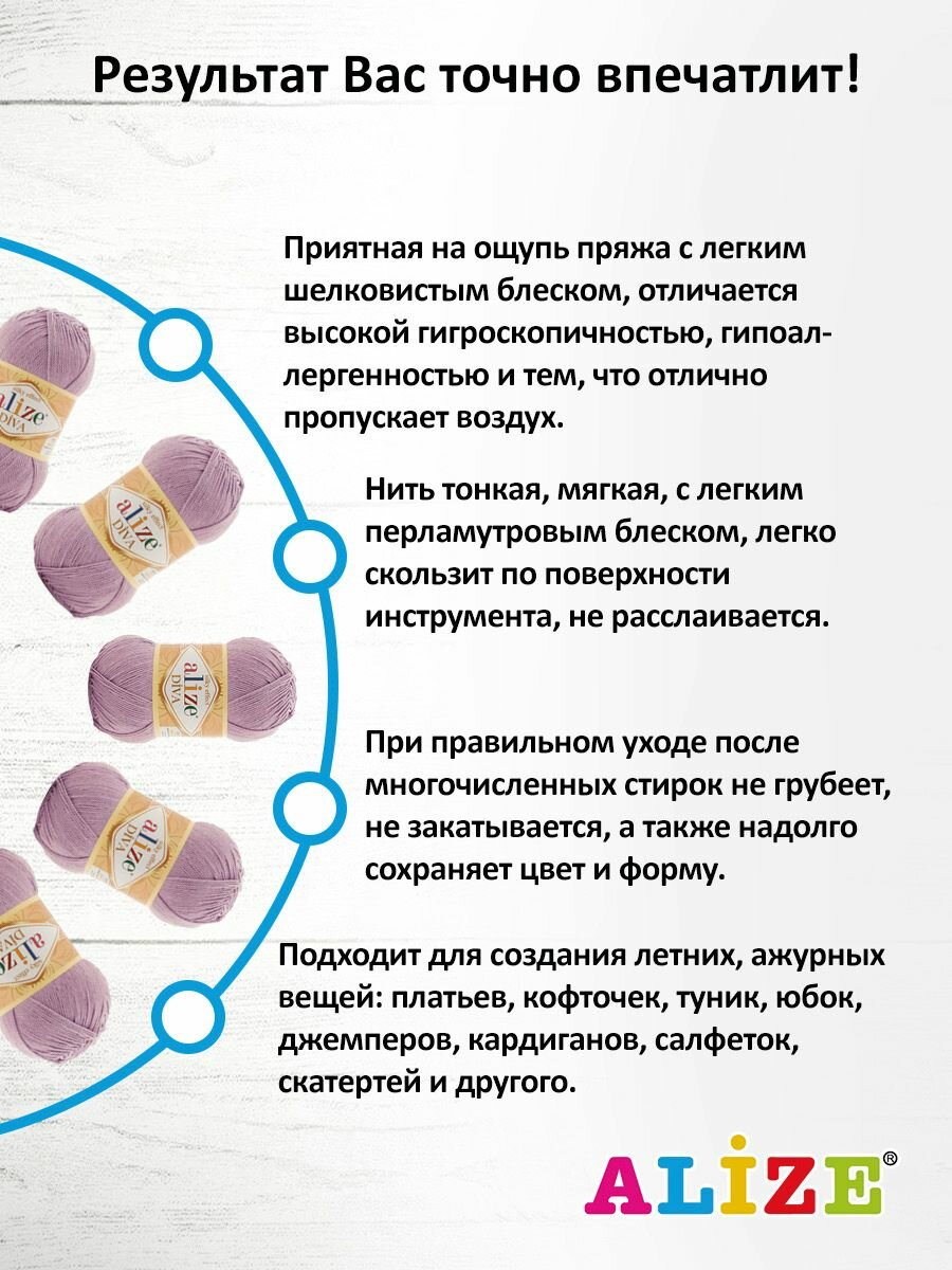 Отзывы на Пряжа для вязания ALIZE 'Diva', 100г, 350м (100% микрофибра) ТУ (505 Пепельно-сиреневый), 5 мотков
