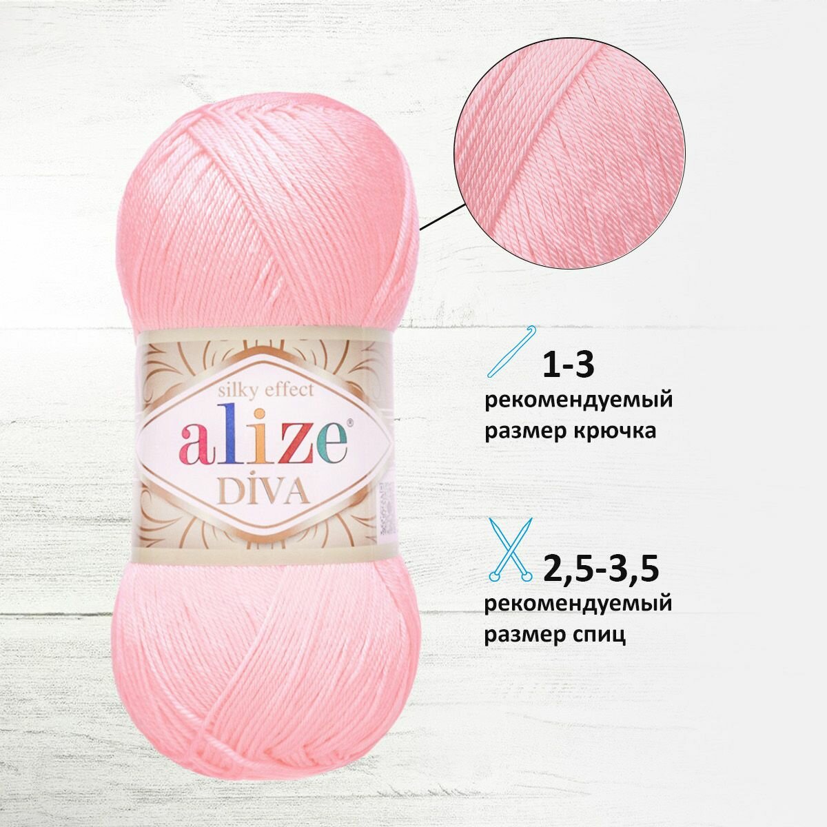 Пряжа ALIZE DIVA, светло-розовый - 291, 100% микрофибра акрил, 5 мотков, 100 г, 350 м.