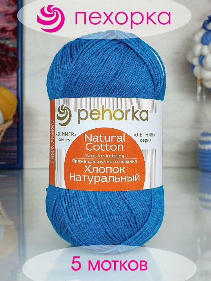 Пряжа Пехорка Хлопок Натуральный- 5 мотков 26 василек 100% хлопок 425м/100г