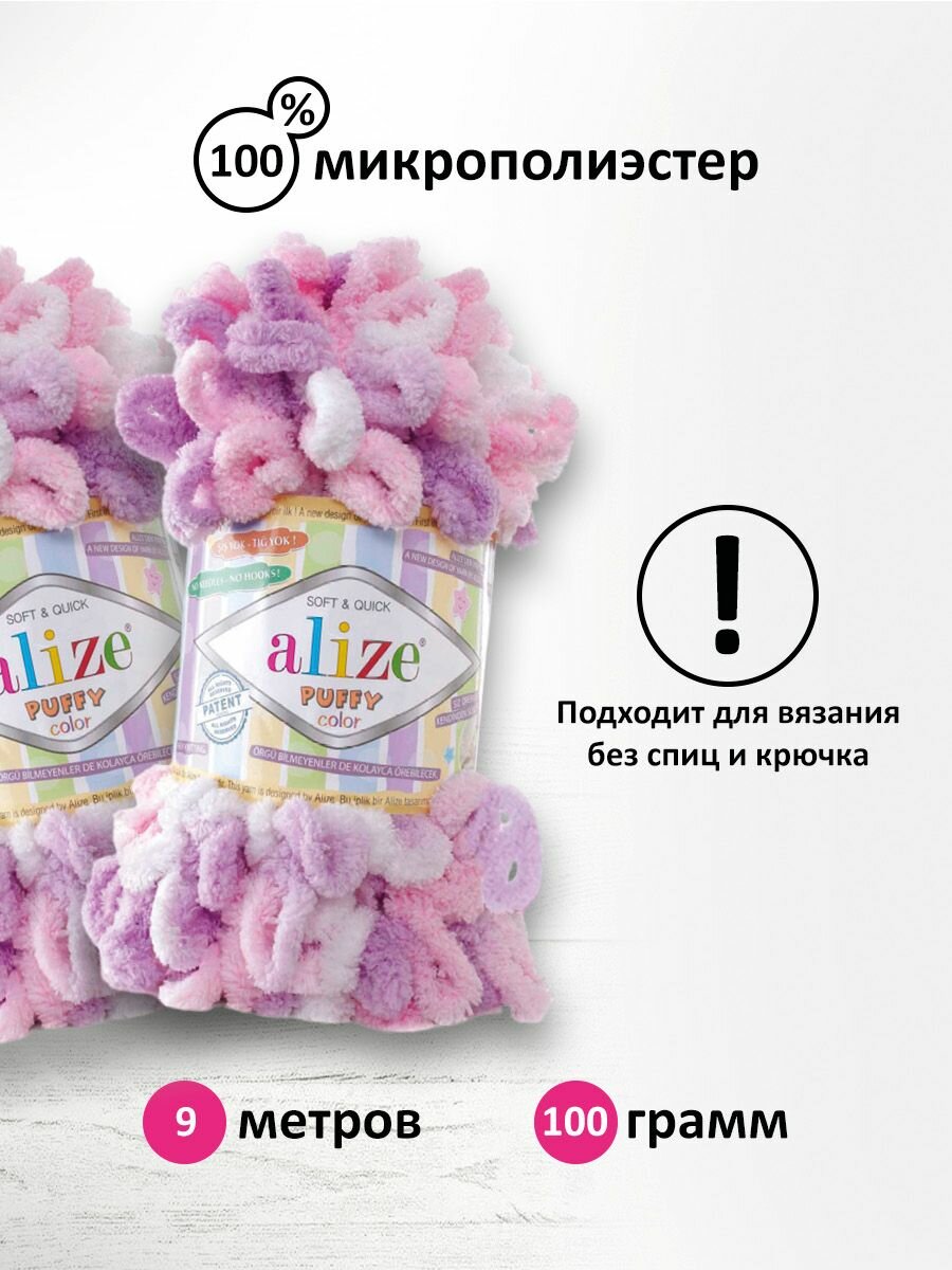 Пряжа Puffy Color Alize (5865), 100г, 9м, 100% микрополиэстер (2 шт.)