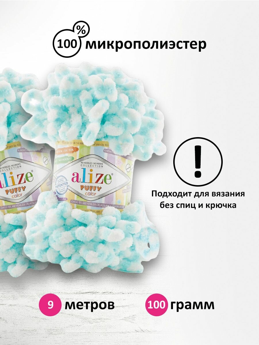 Пряжа PUFFY COLOR (Alize), бело-голубой - 5865, 100% микрополиэстер, 5 мотков, 100 г, 9 м.