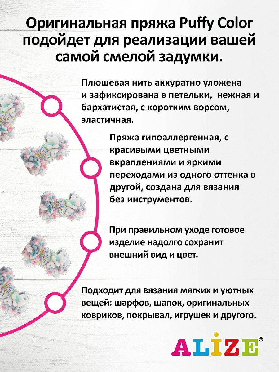 Пряжа для вязания руками с петлями ALIZE 'Puffy Color' 100г, 9м (6529 секционный), 5 мотков информация: