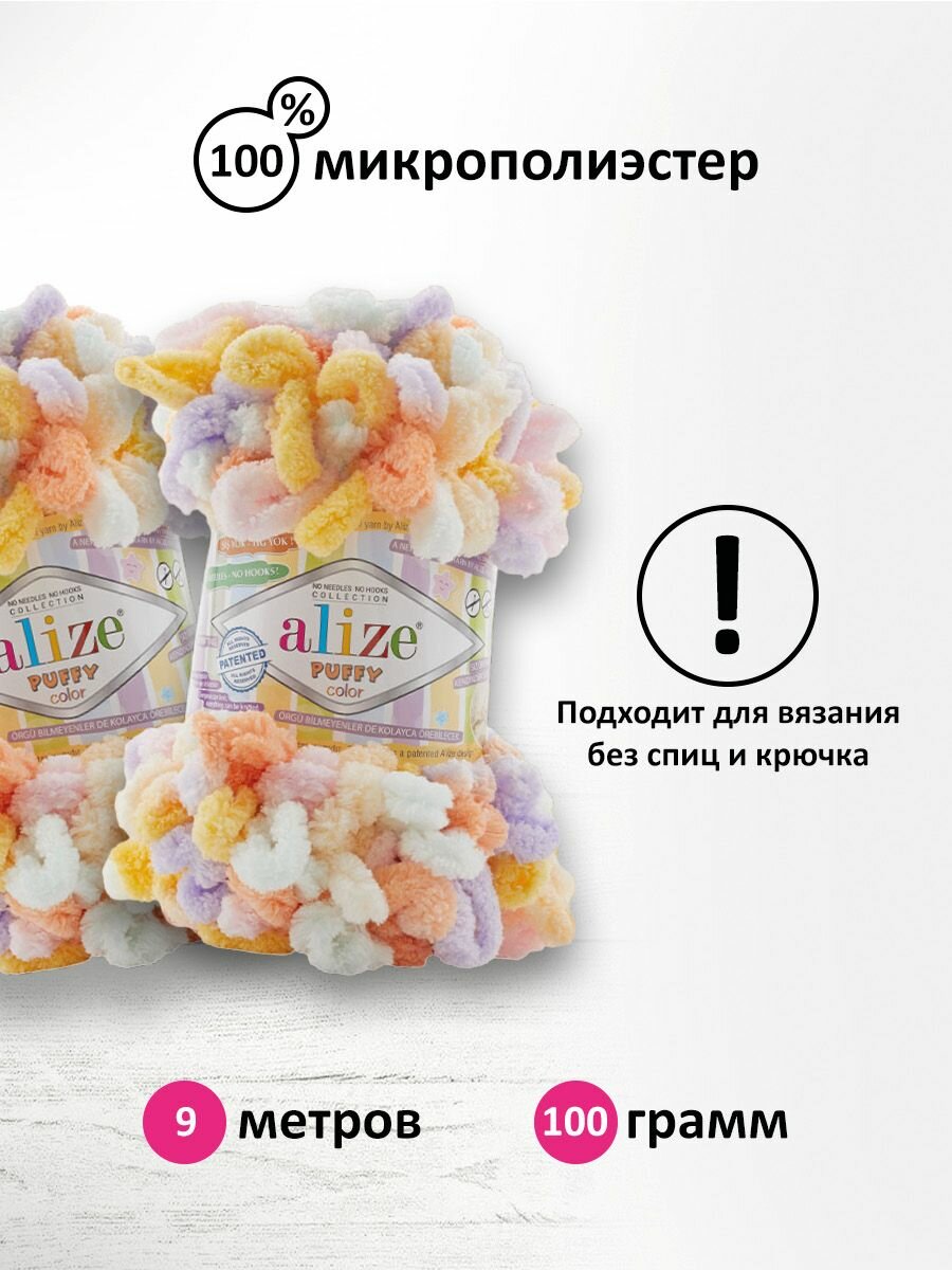 Пряжа Puffy Color Alize (5865), 100г, 9м, 100% микрополиэстер (2 шт.)
