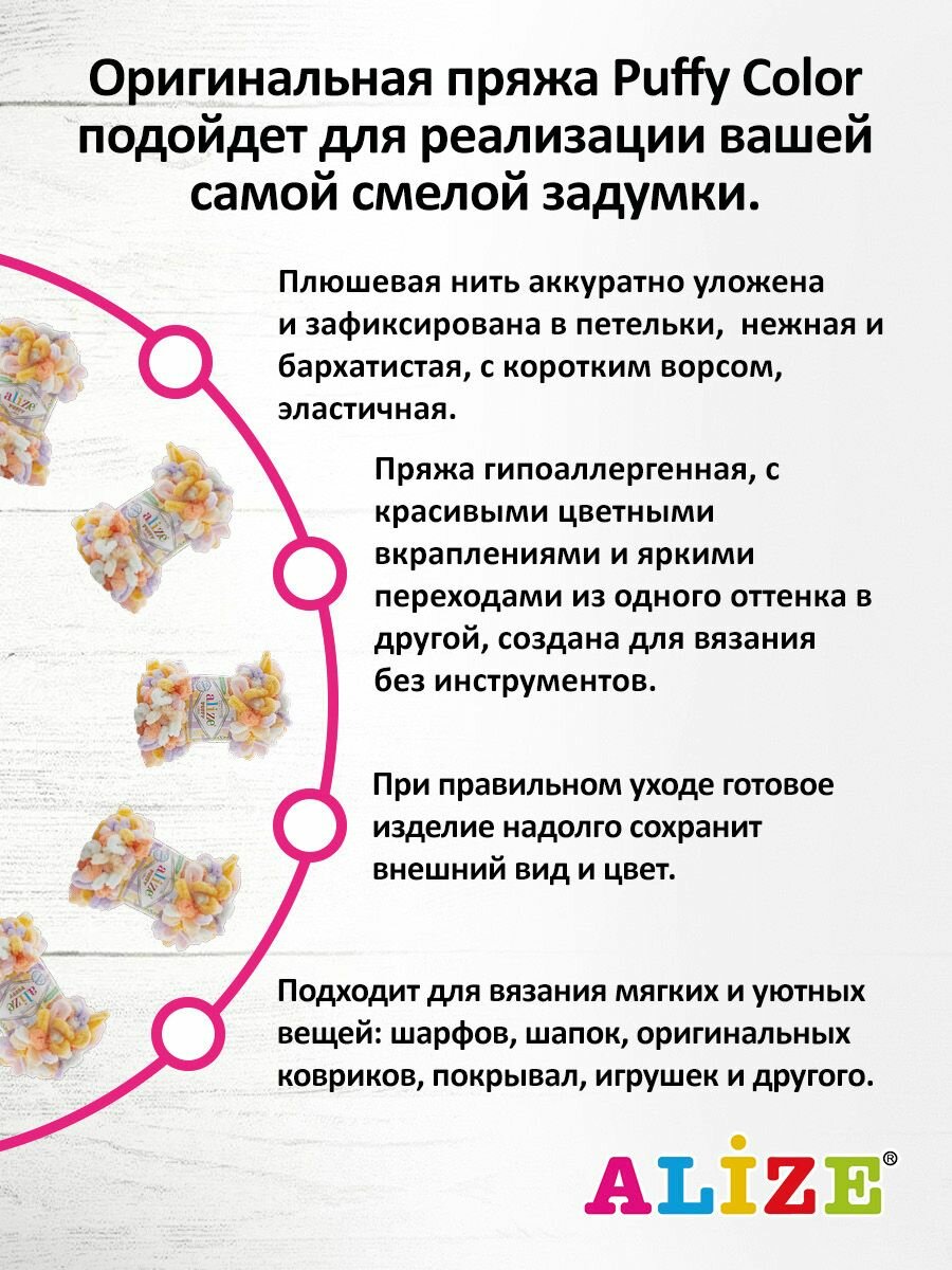 Пряжа для вязания руками с петлями ALIZE 'Puffy Color' 100г, 9м (6520 секционный), 5 мотков информация: