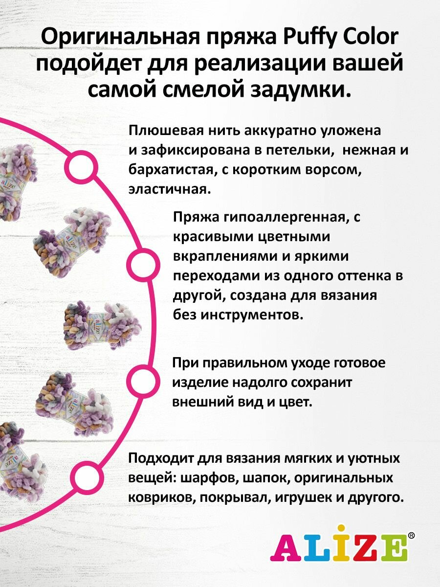 Пряжа PUFFY COLOR (Alize), сирен/розовый - 6305, 100% микрополиэстер, 5 мотков, 100 г, 9 м.
