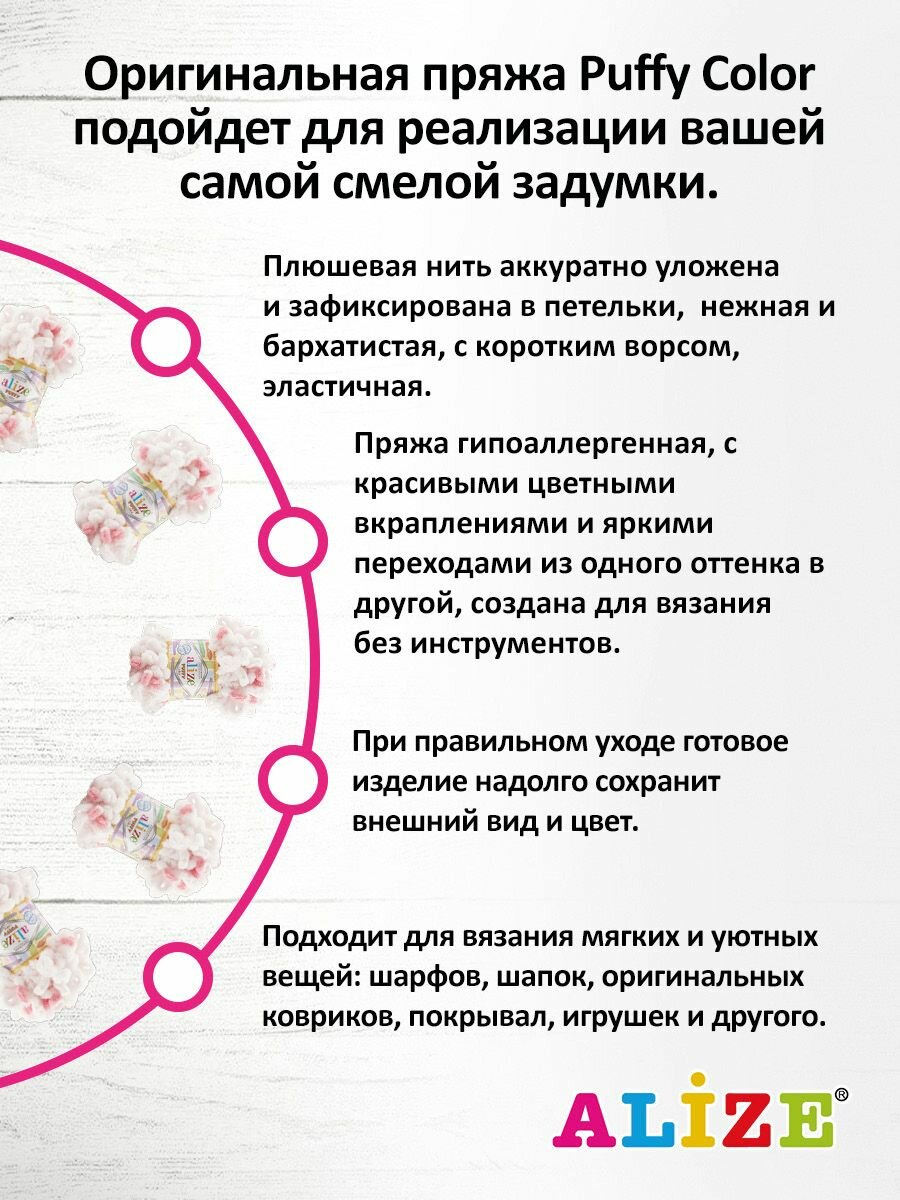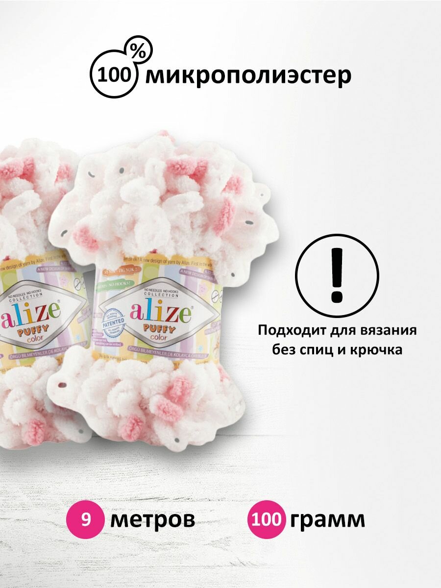 Пряжа PUFFY COLOR (Alize), розово-белый - 5863, 100% микрополиэстер, 5 мотков, 100 г, 9 м. 1 441 ₽