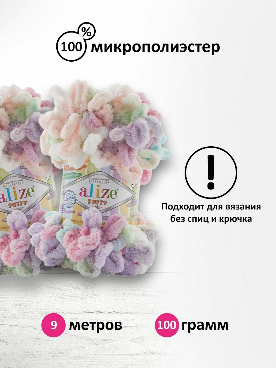 Пряжа Puffy Color Alize (5865), 100г, 9м, 100% микрополиэстер (2 шт.)