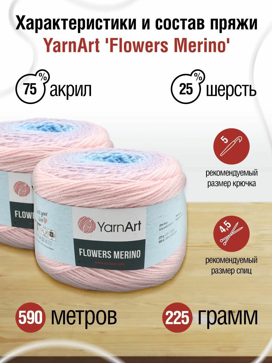 Пряжа для вязания YarnArt 'Flowers Merino' 225г, 590м (25% шерсть, 75% акрил) (542 секционный), 2 мотка