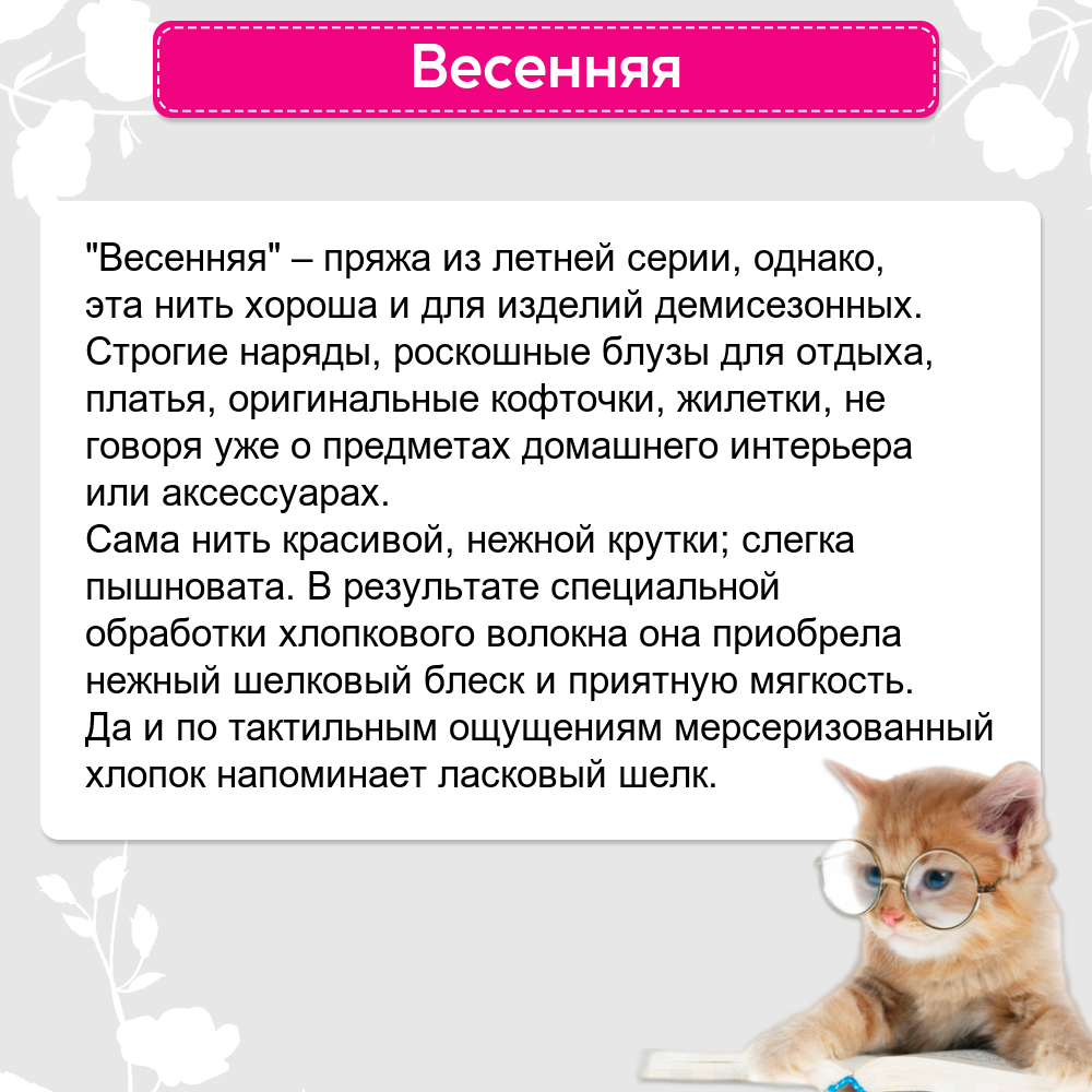Пряжа Весенняя (Пехорка), Перламутр - 276, 100% мерсеризованный хлопок, 5 мотков, 100 г., 250 м.