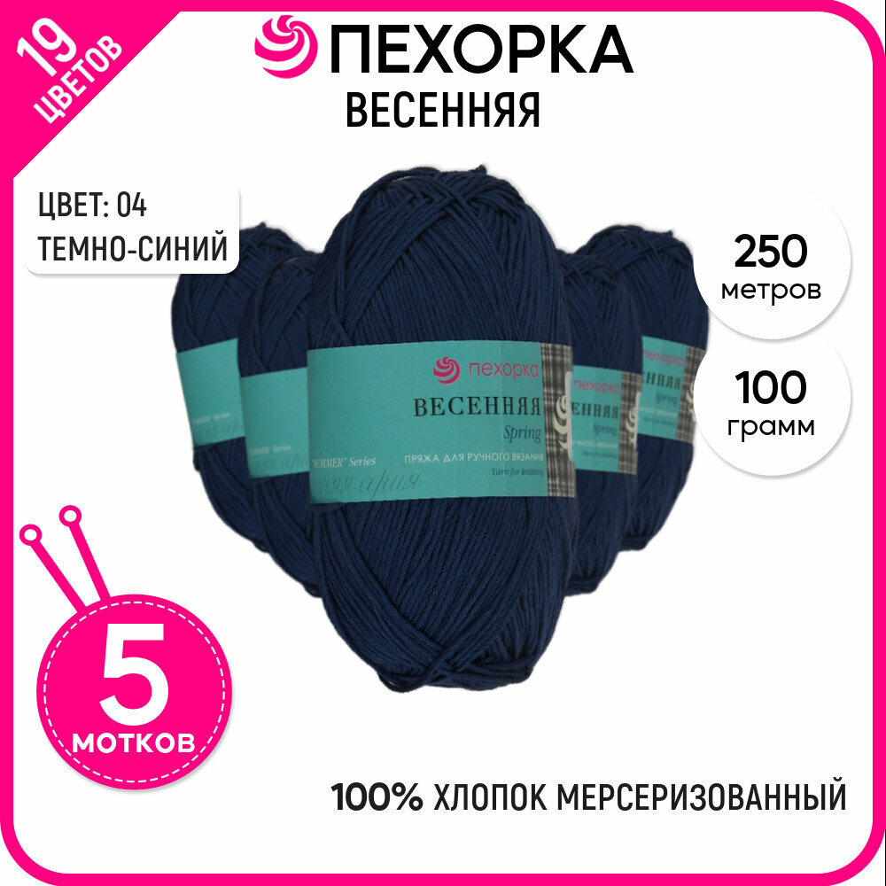 Пряжа Пехорка Весенняя темно-синий (004), 100%мерсеризованный хлопок, 250м, 100г, 5шт информация: