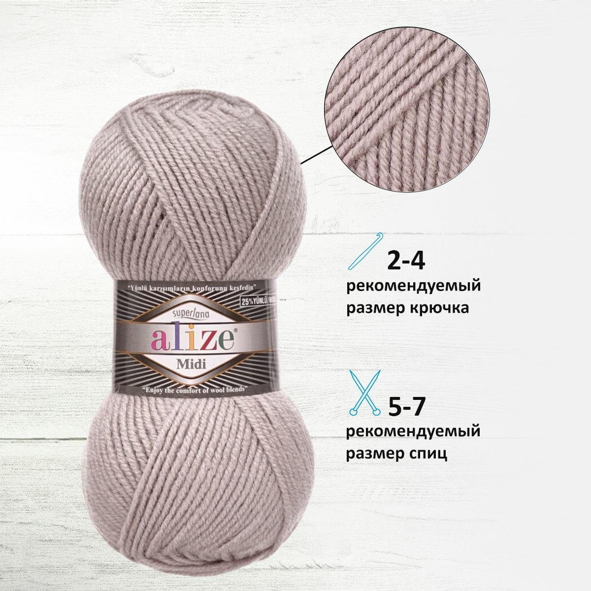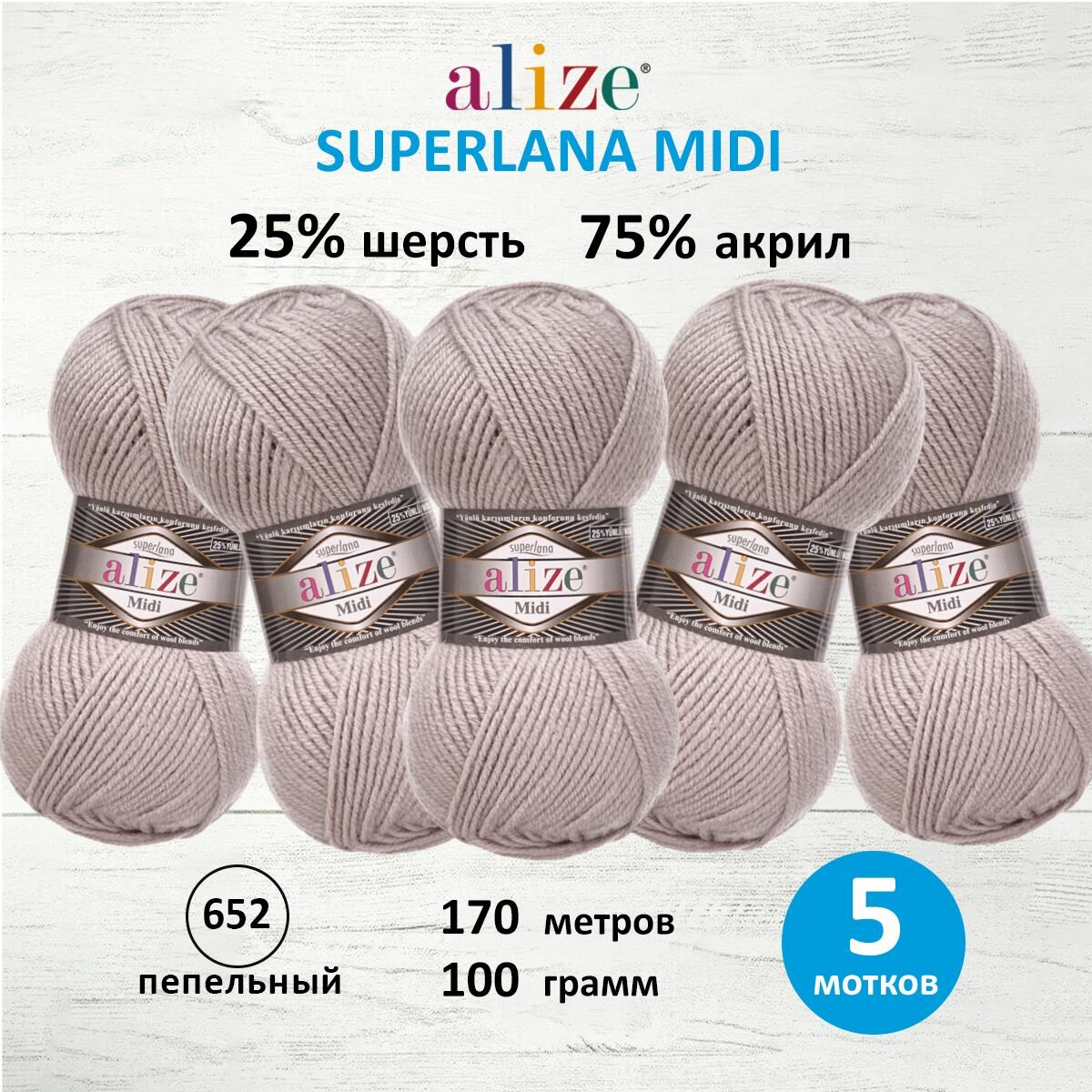 10 цен на Пряжа Alize Superlana Midi пепельный (652), 25%шерсть/75%акрил, 170м, 100г, 5шт