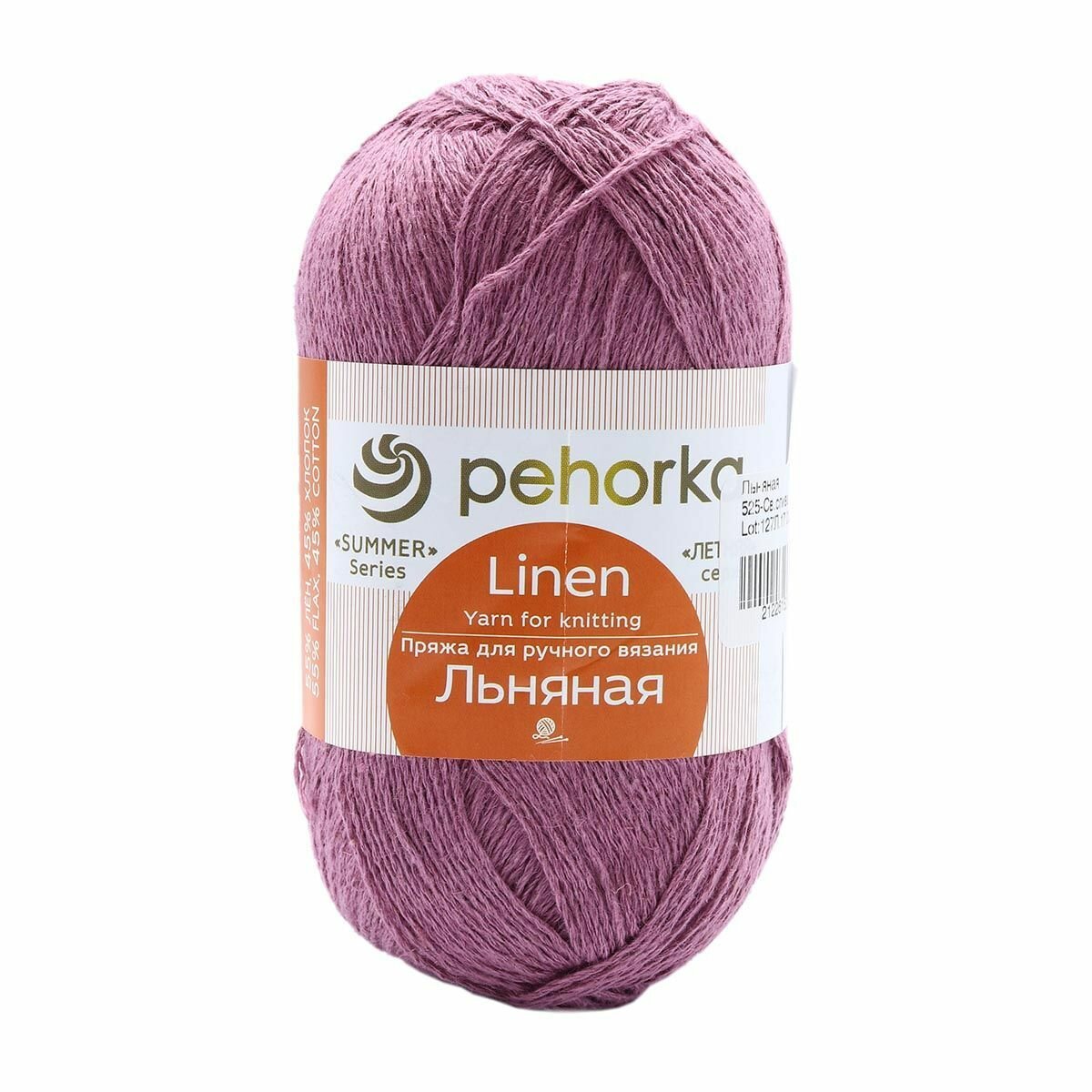 Пряжа Пехорка Льняная светлая слива (525), 55%лен/45%хлопок, 330м, 100г, 1шт