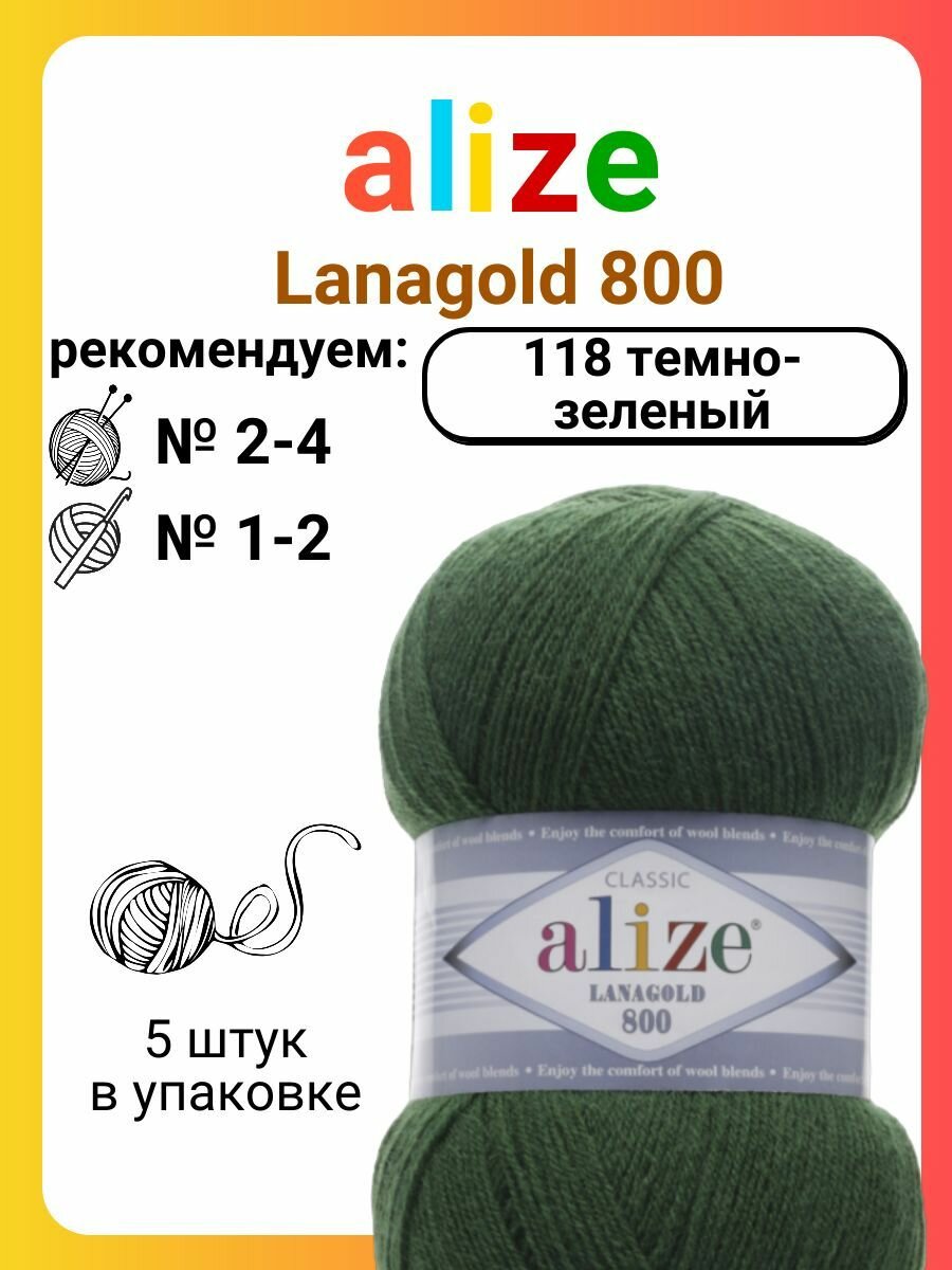 Пряжа для вязания Alize Lanagold 800 № 118, 800 м, 100 г, 5 шт (зеленый) информация: