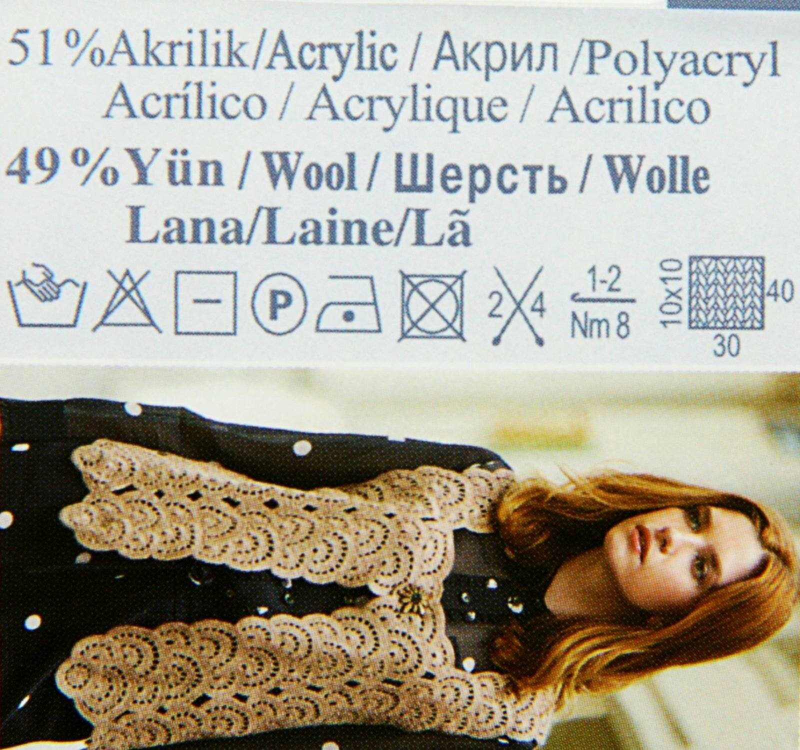 Пряжа Alize Lanagold 800 (Ланаголд 800) - 1 моток Цвет: 450 жемчужный 49% шерсть, 51% акрил 100г 730м