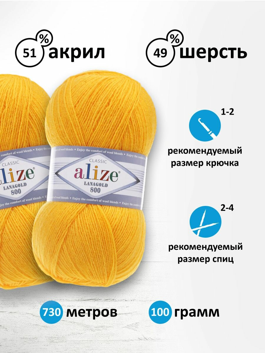 10 цен на Пряжа Alize Lanagold 800 желтый (216), 51%акрил/49%шерсть, 800м, 100г, 5шт