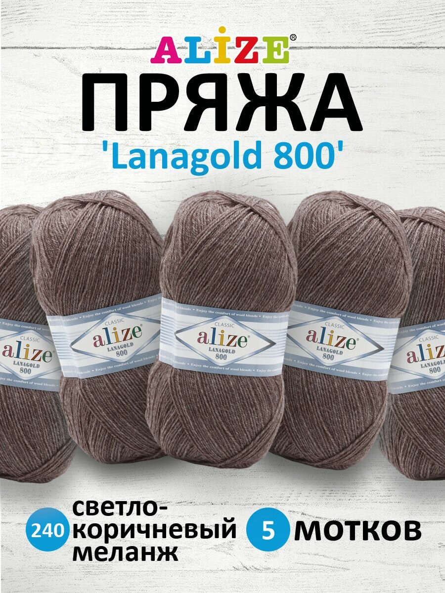Пряжа для вязания ALIZE 'Lanagold 800', 100г, 730м (49% шерсть, 51% акрил) (240 светло-коричневый меланж), 5 мотков информация: